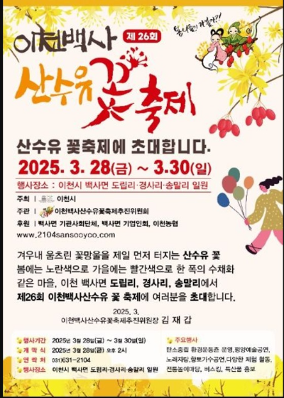 2. 2025년 이천 백사 산수유꽃 축제 일정 및 장소
