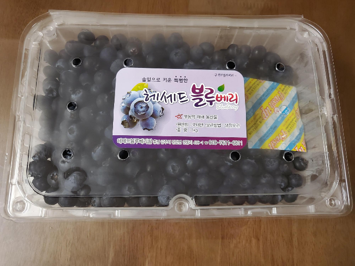 얼마 전 직장에 블루베리 농장을 운영하시는 아주머님께서 블루베리를 직접 판매하시러 오셨습니다. 평소에는 마트에서 소량으로 사 먹곤 하는데 농장 아주머님께서 직접 키운 신 블루베리를 1kg을 15,000원에 판매하셔서 믿고 구매했습니다.